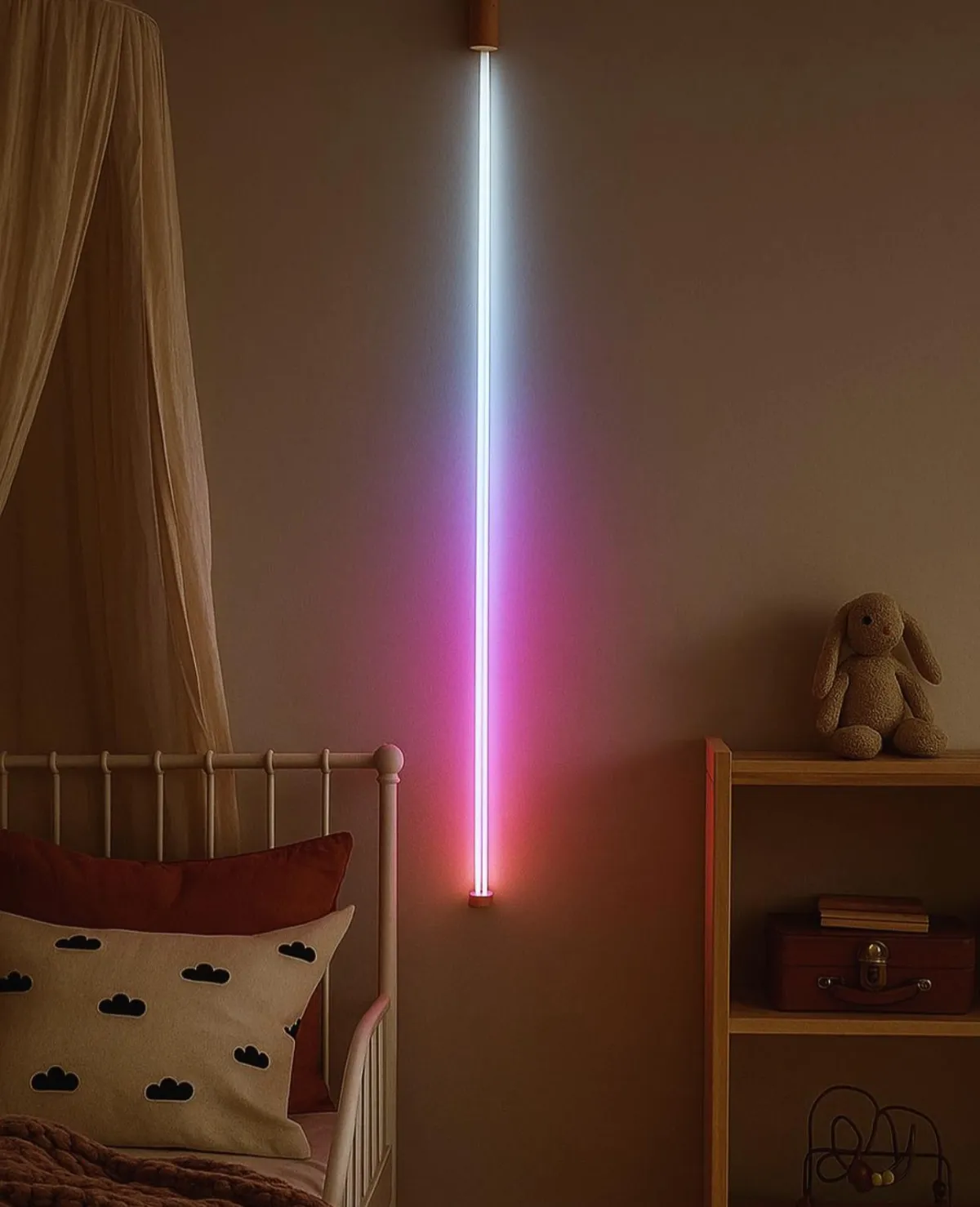 Architectural LED strip with built‑in time logic. Perfect for under‑cabinet lighting, behind TVs, shelves and headboards.